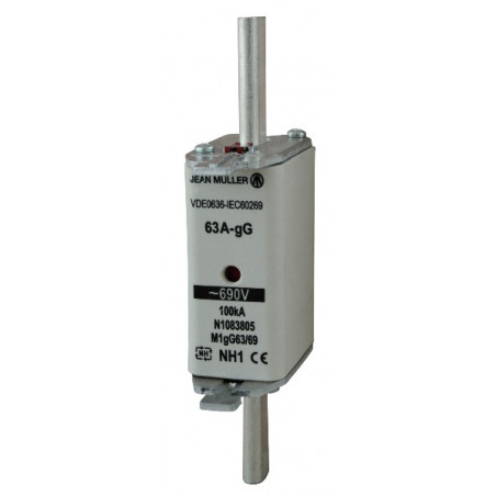 M1GG100/69 - CARTOUCHE A COUTEAU (FUSIBLE A COUTEAU HPC) NH DIN, VOYANT INDICATEUR COMBINE, GL/GG PROTECTION DE LIGNES/PROTECTION D'APPAREILS GAMME COMPLETE (LENT/RAPIDE), TAILLE NH1 T1 690V 100A(ANCIENNE REFERENCE GE: 778172)