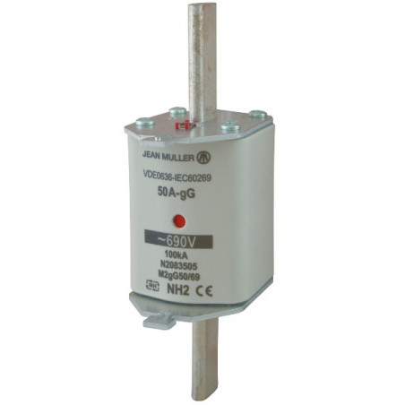 M2GG224/69 - CARTOUCHE A COUTEAU (FUSIBLE A COUTEAU HPC) NH DIN, VOYANT INDICATEUR COMBINE, GL/GG PROTECTION DE LIGNES/PROTECTION D'APPAREILS GAMME COMPLETE (LENT/RAPIDE), TAILLE NH2 T2 690V 224A(ANCIENNE REFERENCE GE: 778182)