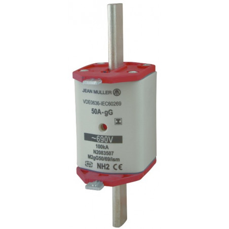 M2GG250/69/ISM - CARTOUCHE A COUTEAU (FUSIBLE A COUTEAU HPC) NH DIN, VOYANT INDICATEUR COMBINE, PATTES D'ARRACHAGE METALLIQUES ISOLEES ISM, GL/GG PROTECTION DE LIGNES/PROTECTION D'APPAREILS GAMME COMPLETE (LENT/RAPIDE), TAILLE NH2 T2 690V 250A(ANCIENNE RE