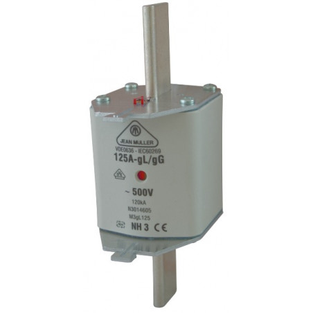 M3GL250 - CARTOUCHE A COUTEAU (FUSIBLE A COUTEAU HPC) NH DIN, VOYANT INDICATEUR COMBINE, GL/GG PROTECTION DE LIGNES/PROTECTION D'APPAREILS GAMME COMPLETE (LENT/RAPIDE), TAILLE NH3 T3 500V 250A