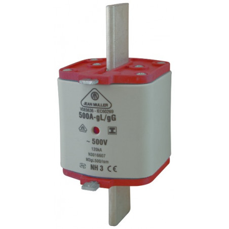 M3GL630ISM - CARTOUCHE A COUTEAU (FUSIBLE A COUTEAU HPC) NH DIN, VOYANT INDICATEUR COMBINE, PATTES D'ARRACHAGE METALLIQUES ISOLEES ISM, GL/GG PROTECTION DE LIGNES/PROTECTION D'APPAREILS GAMME COMPLETE (LENT/RAPIDE), TAILLE NH3 T3 500V 630A(ANCIENNE REFERE