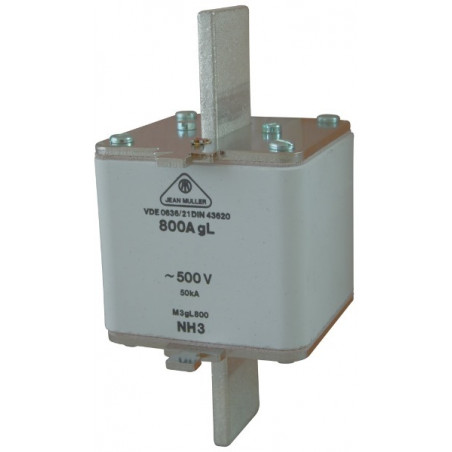 M3GL800 - CARTOUCHE A COUTEAU (FUSIBLE A COUTEAU HPC) NH DIN, VOYANT INDICATEUR DE FRONT, GL/GG PROTECTION DE LIGNES/PROTECTION D'APPAREILS GAMME COMPLETE (LENT/RAPIDE), TAILLE NH3 T3 500V 800A
