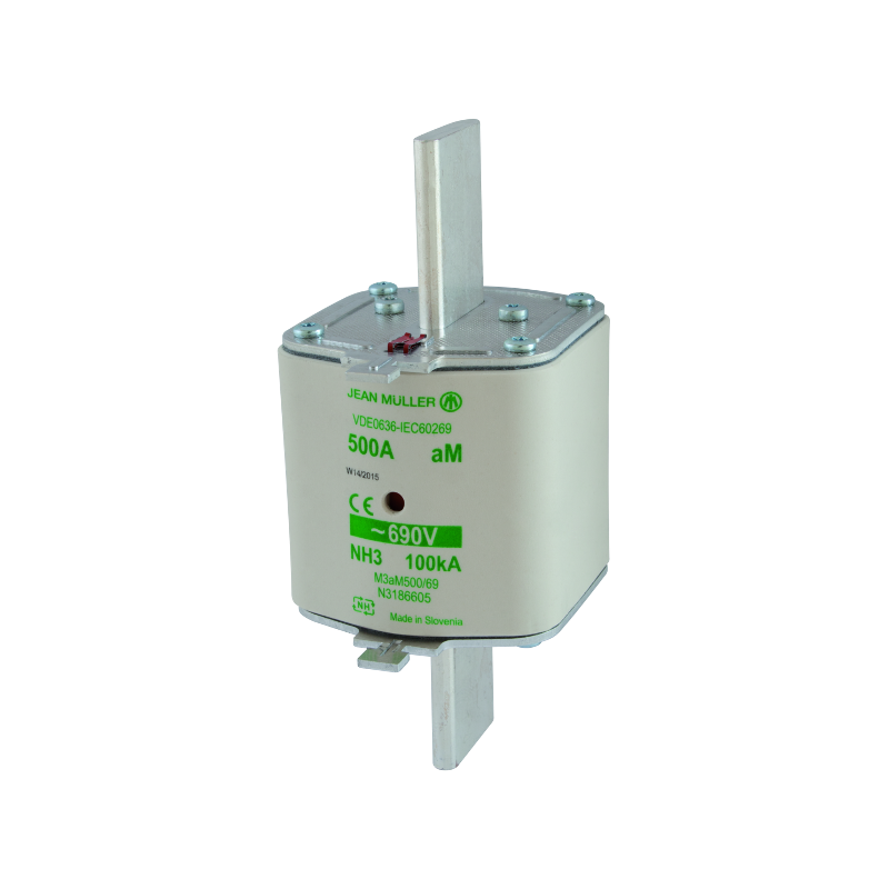 M3AM500/69 - CARTOUCHE A COUTEAU (FUSIBLE A COUTEAU HPC) NH DIN, VOYANT INDICATEUR COMBINE, AM PROTECTION DES APPAREILS DE COMMUTATION GAMME PARTIELLE, TAILLE NH3 T3 690V 500A(ANCIENNE REFERENCE GE: 778623 / ANCIENNE REFERENCE VYNCKIER 320154240)