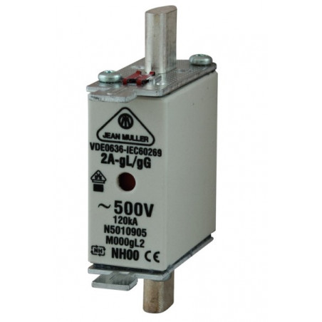 M000GL125 - CARTOUCHE À COUTEAU FUSIBLE À COUTEAU HPC NH DIN, VOYANT INDICATEUR DE FRONT, GL/GG PROTECTION DE LIGNES/PROTECTION DAPPAREILS GAMME COMPLÈTE LENT/RAPIDE, TAILLE NH000 T000 500V 125A
