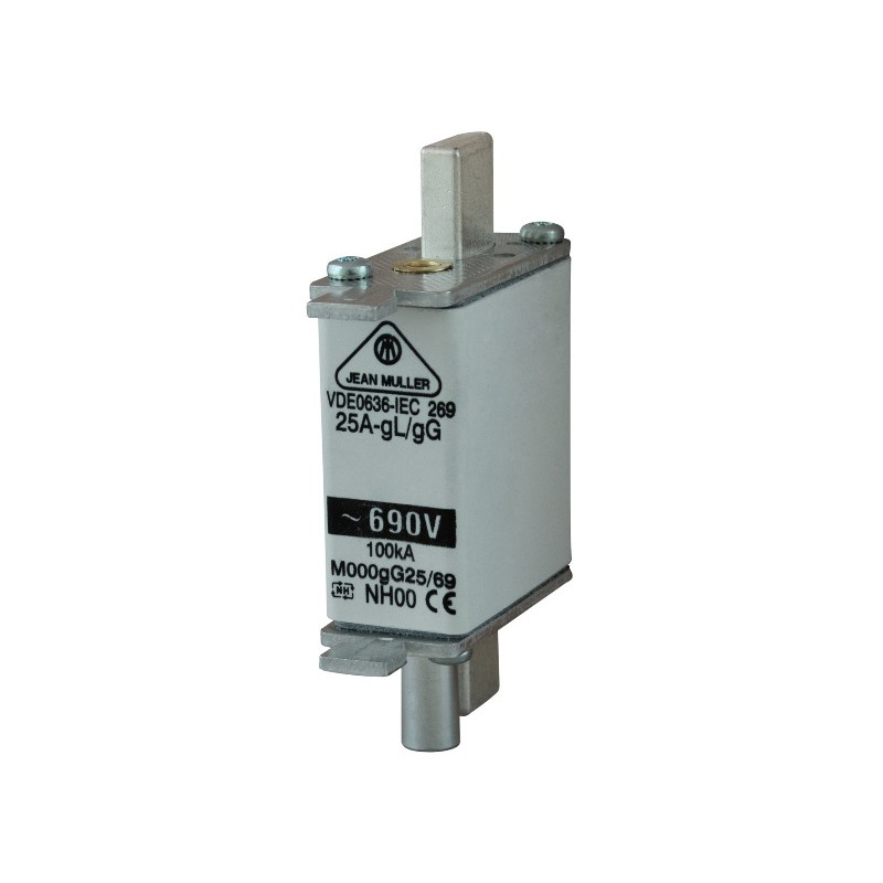 M000GG25/69/K - CARTOUCHE A COUTEAU (FUSIBLE A COUTEAU HPC) NH DIN, AVEC PERCUTEUR, GL/GG PROTECTION DE LIGNES/PROTECTION D'APPAREILS GAMME COMPLETE (LENT/RAPIDE), TAILLE NH000 T000 690V 25A(ANCIENNE REFERENCE GE: 779758 / ANCIENNE REFERENCE VYNCKIER 320