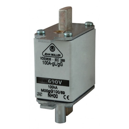 M00GG80/69/K - CARTOUCHE A COUTEAU (FUSIBLE A COUTEAU HPC) NH DIN, AVEC PERCUTEUR, GL/GG PROTECTION DE LIGNES/PROTECTION D'APPAREILS GAMME COMPLETE (LENT/RAPIDE), TAILLE NH00 T00 690V 80A(ANCIENNE REFERENCE GE: 777452 / ANCIENNE REFERENCE VYNCKIER 320524