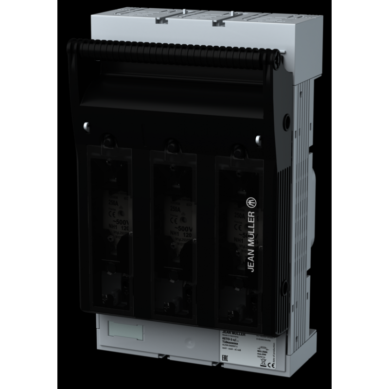 KETO-1-3/F - SECTIONNEUR-FUSIBLES POUR CARTOUCHES FUSIBLES A COUTEAUX HPC TAILLE NH1, T1, 250A, 3P, BORNE PLATE, M10X25(ANCIENNE REFERENCE GE: 700004 / 778275 / ANCIENNE REFERENCE VYNCKIER 325173000)