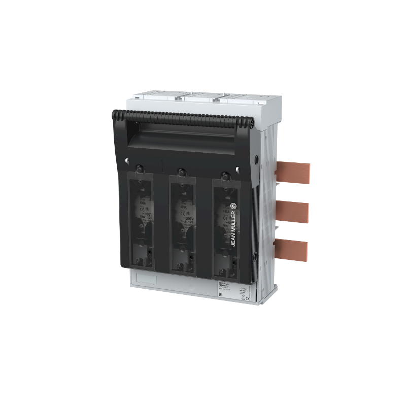 KETO-2-3/60/AOU/F/OGS - SECTIONNEUR-FUSIBLES POUR CARTOUCHES FUSIBLES A COUTEAUX HPC POUR JEUX DE BARRES DISTANCE ENTRE CENTRE RAILS 60MM, TAILLE NH2, T2, 400A, 3P, POUR COFFRET MODULAIRE MODULE 300MM, BORNE PLATE, M10X25(ANCIENNE REFERENCE GE: 700435)