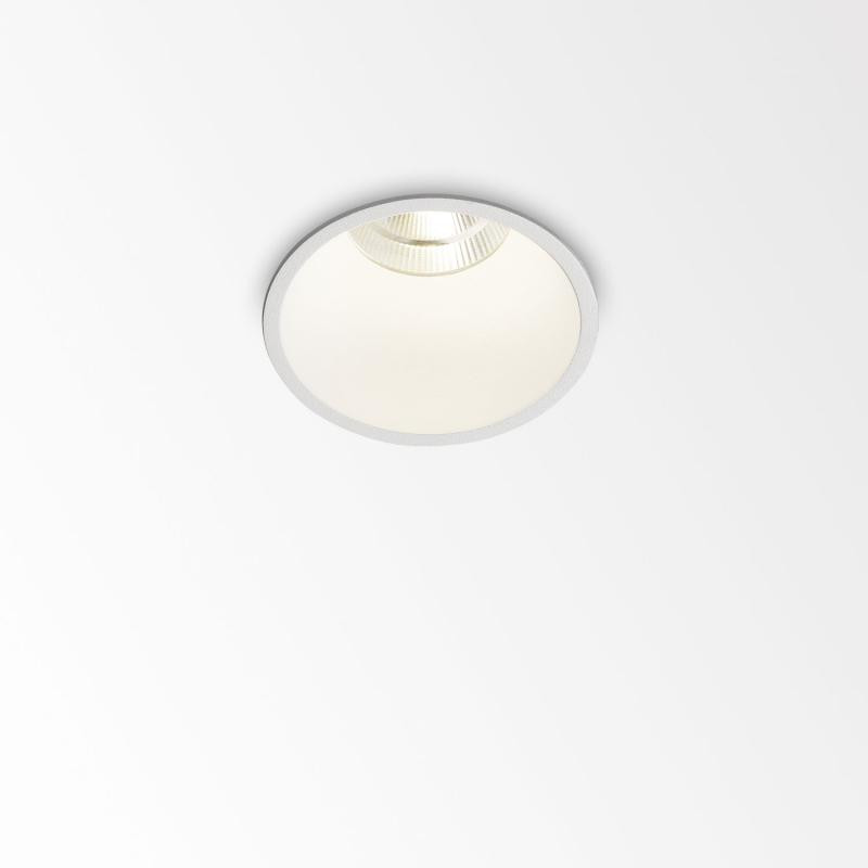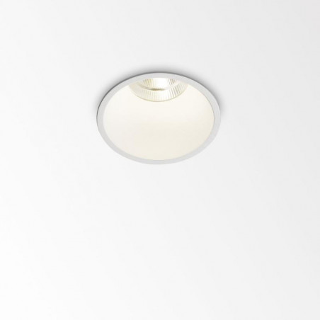 Description: Luminaire de Delta Light, montage plafond-encastré (usage intérieur), nommé DEEP RINGO LED 93033. Finition : blanc. Montage encastré à découpe ronde avec un diamètre de 76 mm et profondeur minimale pour encastrement de 90 mm. Le luminaire est équipé avec 1 x LED 7,1-10,4W / CRI>90 / 3000K / 774-1075lm (pas inclus: alimentation LED 350-500mA-DC).