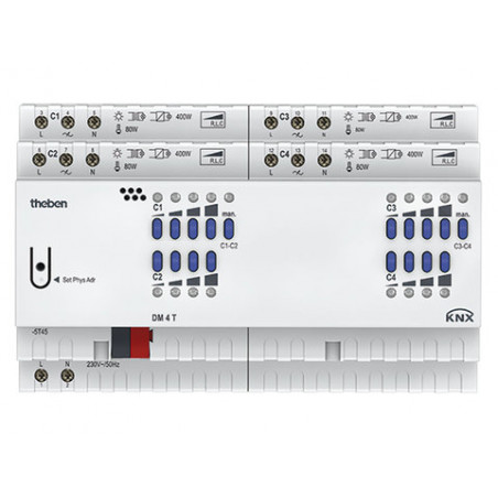Marque: THEBENRéférence: 4940275Description: VARIATEUR DE LUMIERE 4 CANAUX 230V 50HZ 4X400WConditionnement: 1EAN: 4003468490808