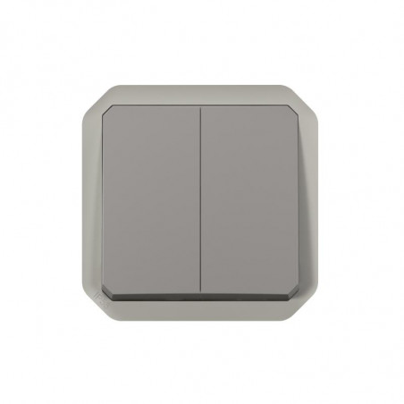 Description: PLEXO double interrupteur deux directions ou poussoir inverseur - 250V - livre sans boite de montage en surface ou cadre encastre - IP55 IK08 - gris