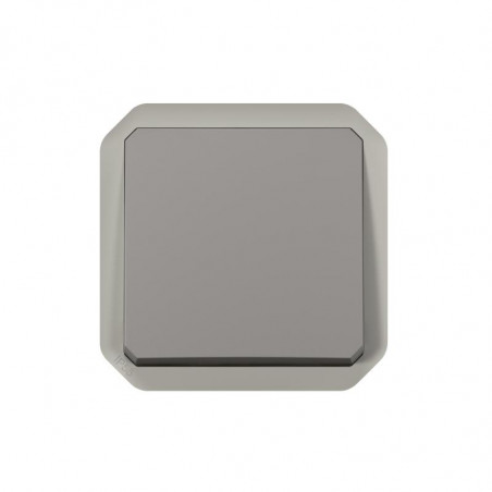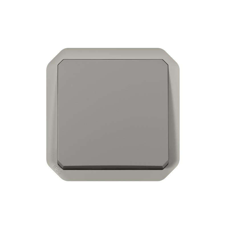 Description: PLEXO poussoir NO 10 A - 250 V - livre sans boite de montage en surface ou cadre encastre - IP55 IK08 - gris