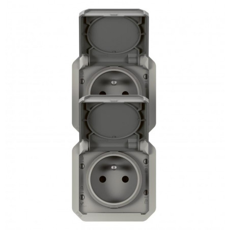 PLEXO prise 2x2PT vertical mecanisme IP55 IK08 gris