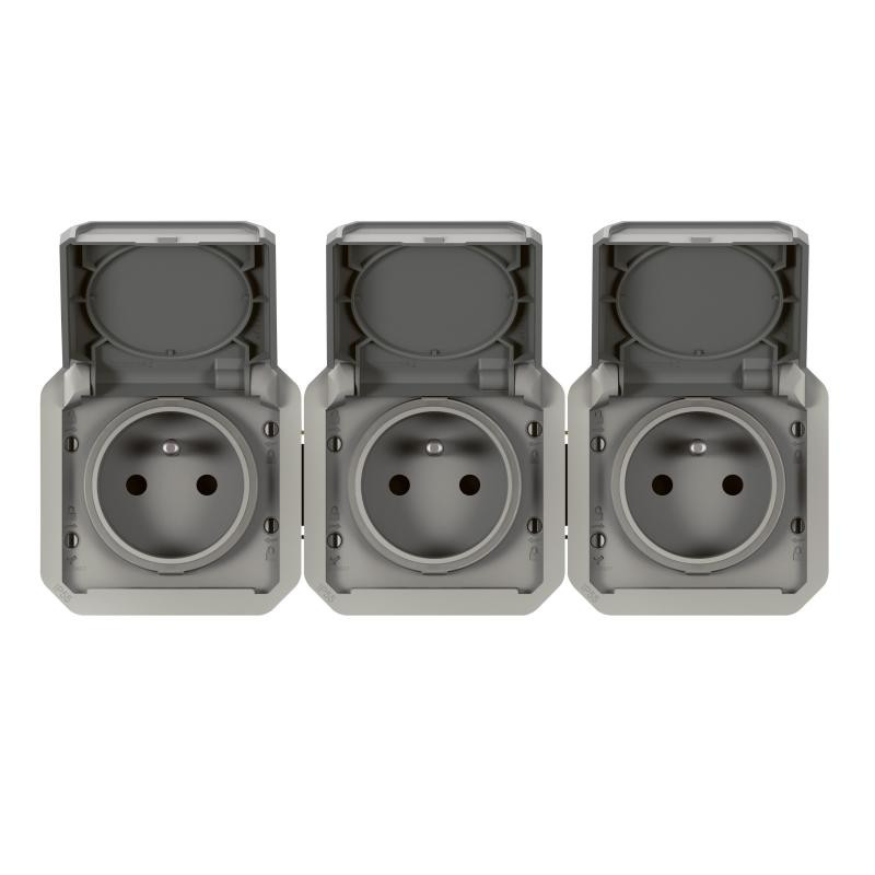 PLEXO prise 3x2PT horizontal mecanisme IP55 IK08 gris