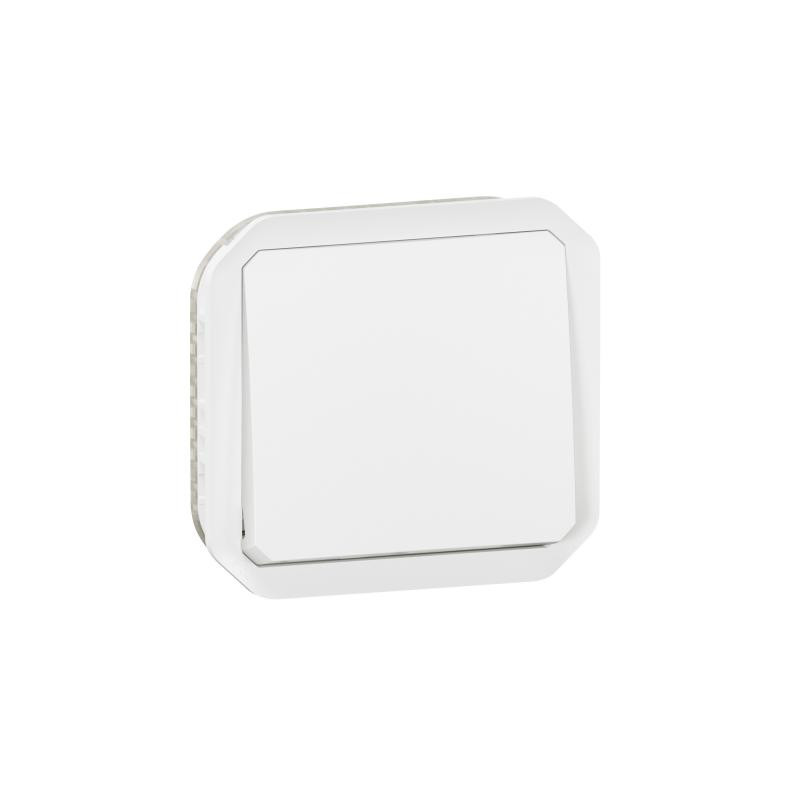 Description: PLEXO poussoir inverseur NO - NF - 10A - livre sans boite de montage en surface ou cadre encastre - IP55 IK08 - blanc