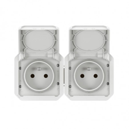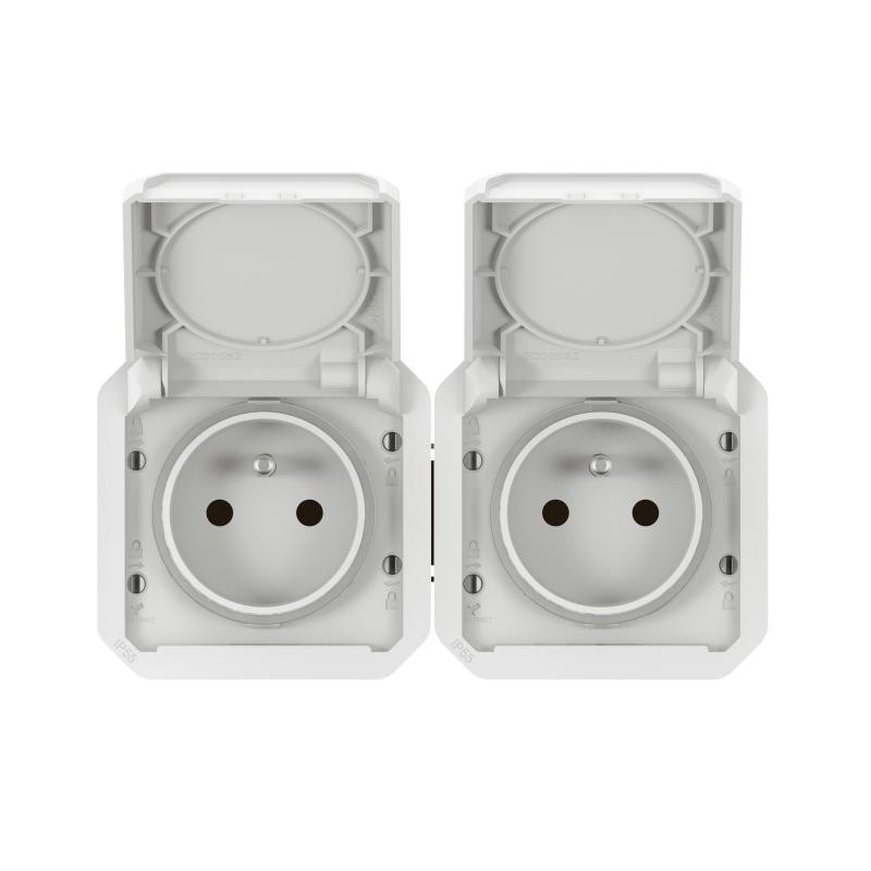 PLEXO prise 2x2PT horizontal mecanisme IP55 IK08 blanc