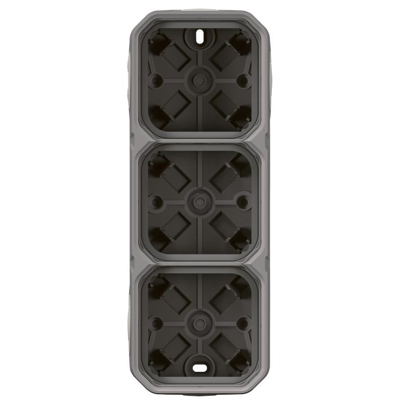 Description: PLEXO boitier a embouts - 3 poste horizontaux ou verticaux - 4 entrees simple en 1 entree double - embouts a membrane - IP55 IK08 - gris