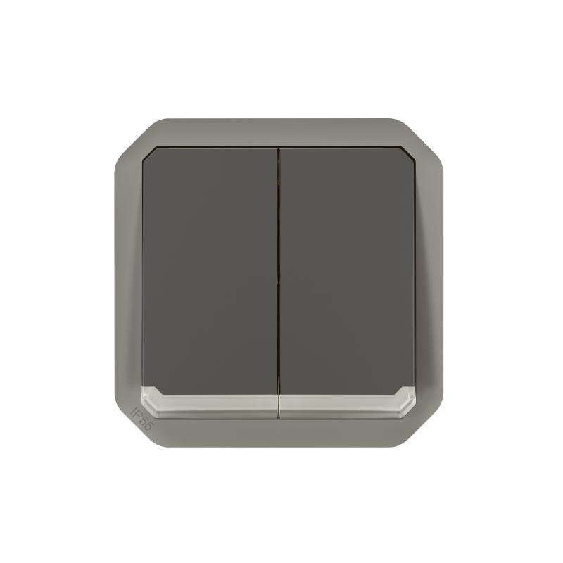 Description: Plexo double interrupteur deux directions ou poussoir inverseur lumineux - 250V - livre sans boite de montage en surface ou cadre encastre - IP55 IK08 - anthracite