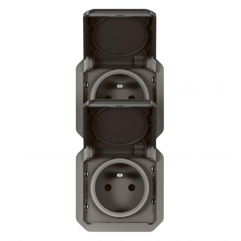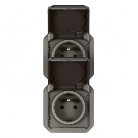 PLEXO prise 2x2PT vertical mecanisme IP55 IK08 anthracite