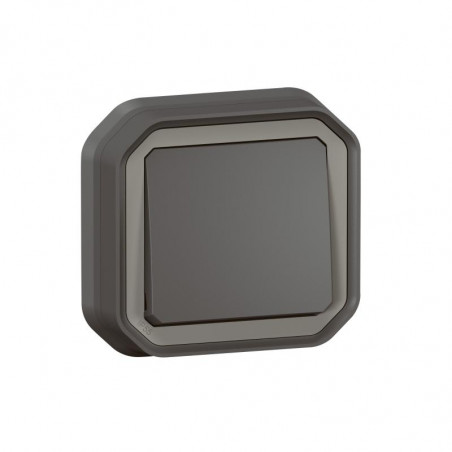 Description: Plexo interrupteur deux directions - 10 AX - 250V - encastre - livre complet avec support plaques - IP55 IK08 - anthracite