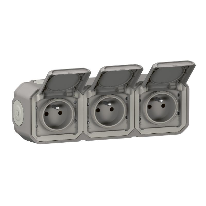 Plexo GP triple prise horizontale complet IP55 gris