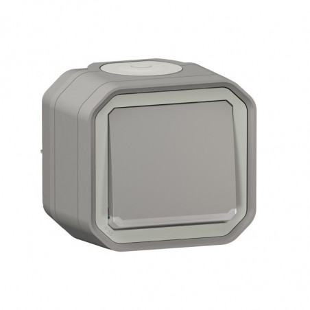 Marque: LegrandRéférence: 070021EAN: 3414971905153Emballage: 10/60/540Description: Plexo GP interrupteur bipolaire avec temoin- appareil complet - IP55 - gris