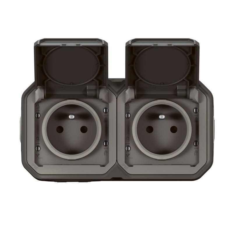 Plexo GP double prise horiz complet IP55 anthracite