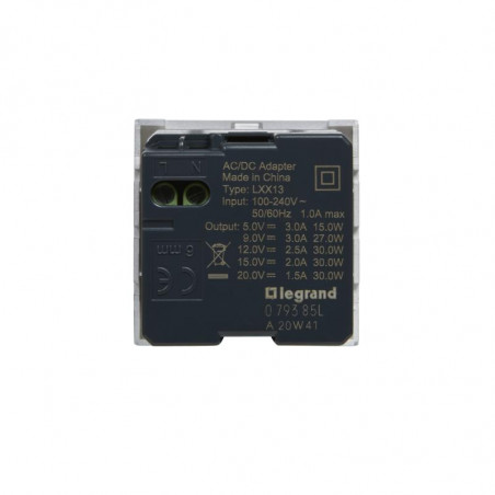 Description: Mosaic chargeur USB 30W Power delivery type C - 2 modules - alu