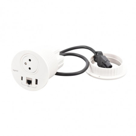 Description: Incara Disq 80 - blanc - equipe de 1 prise FB 1 chargeur USB AC 15W 1 RJ45 cat6 FTP et un cordon de 05m avec fiche GST18