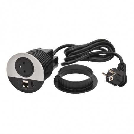Description: Incara Disq 80 - metal - equipe de 1 prise FB 1 chargeur USB AC 15W 1 RJ45 cat6 FTP et un cordon de 2m avec fiche