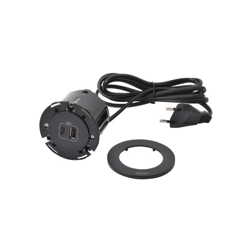 Marque: Legrand Référence: 654731 EAN: 3414972001854 Emballage: AQ2/18/90 Description: Incara Disq 60 - noir - equipe d'un chargeur USB AC 15W et un cordon de 2m avec fiche