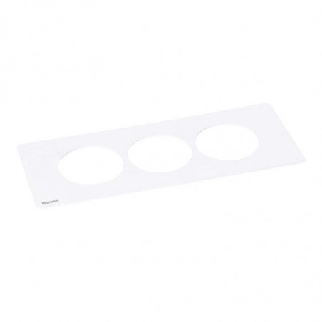 Marque: LegrandRéférence: 654760EAN: 3414971973848Emballage: AQ2/30/600Description: Incara Disq'In - plaque de finition blanche - 3 postes