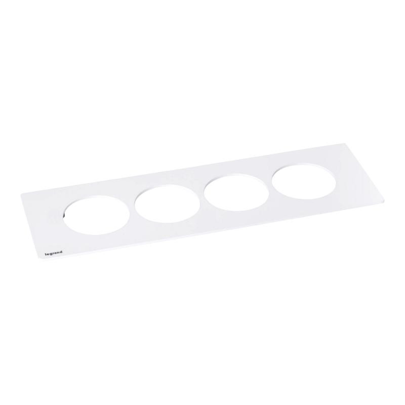 Marque: LegrandRéférence: 654764EAN: 3414971973923Emballage: AQ2/20/400Description: Incara Disq'In - plaque de finition blanche - 4 postes