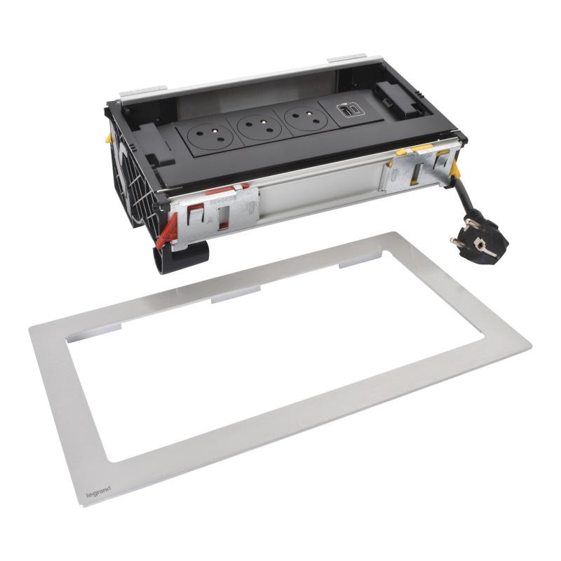 Description: Incara Flip Up - metal - 8 modules - avec 3 prises FB 1 chargeur USB AC 15W 1 et 1 cordon de 2m avec fiche