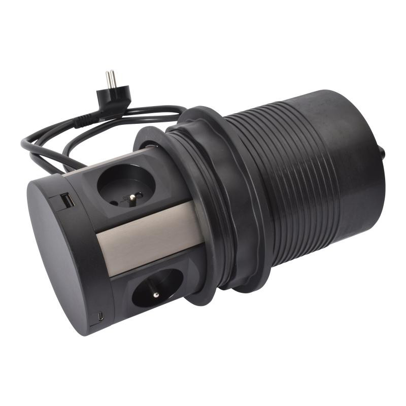 Incara Tower 120- metal noir- 4 prises FB 2 USB AC