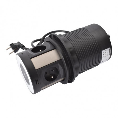 Description: Incara Tower 120 - finition metal noir - equippe de 4 prises FB 2 chargeurs USB AC 15W et un cordon de 2m avec fiche