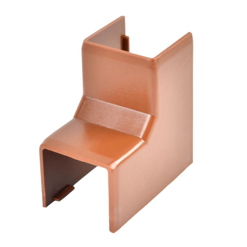 ANGLE INTERIEUR, EN MATIERE SYNTHETIQUE IMITATION CHENE FONCE, POUR LA GAINE D'ALIMENTATION LHD 20X20. INSTALLEZ LES TRACES L'UNE CONTRE L'AUTRE ET CLIQUEZ L'ANGLE INTERIEUR EN DESSUS.