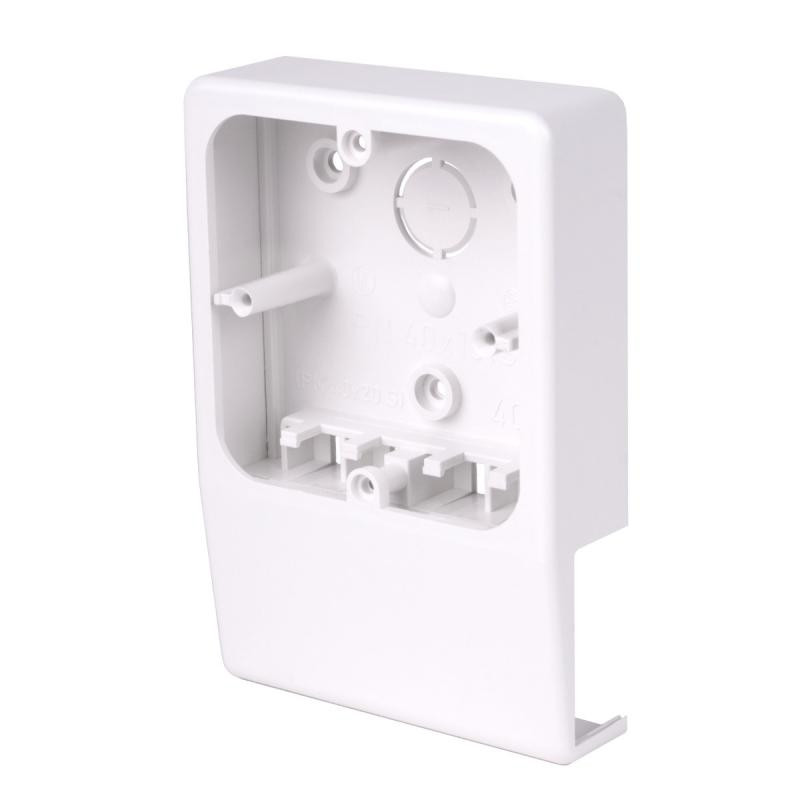 BOITE D'APPAREILLAGE, EN MATIERE SYNTHETIQUE BLANCHE, POUR INSTALLER UN MECANISME AVEC ANNEAU AU-DESSUS LA GAINE D'ALIMENTATION LHD 40X20. UN ADAPTATEUR POUR MONTER AU-DESSUS LA GAINE ET LE MECANISME.
