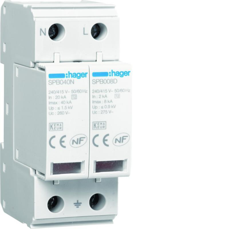 Marque: HagerRéférence: SPB208DEAN: 3250615515438Emballage: 1Description: Parafoudre 2P débrochable 8kA type 2 avec indicateur de réserve