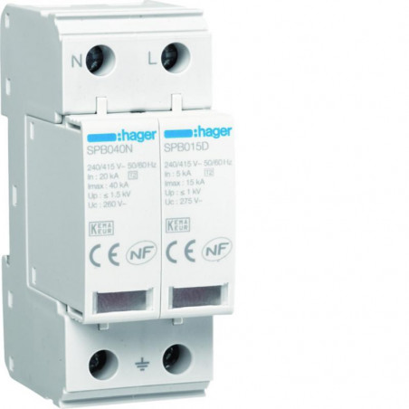 Parafoudre 15kA 2P avec indicateur de réserve et télésignalisation