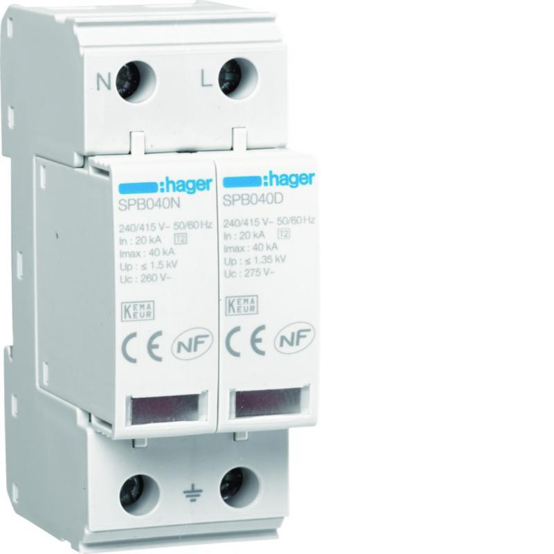 Marque: HagerRéférence: SPB240DEAN: 3250615515476Emballage: 1Description: Parafoudre 40kA 2P avec indicateur de réserve