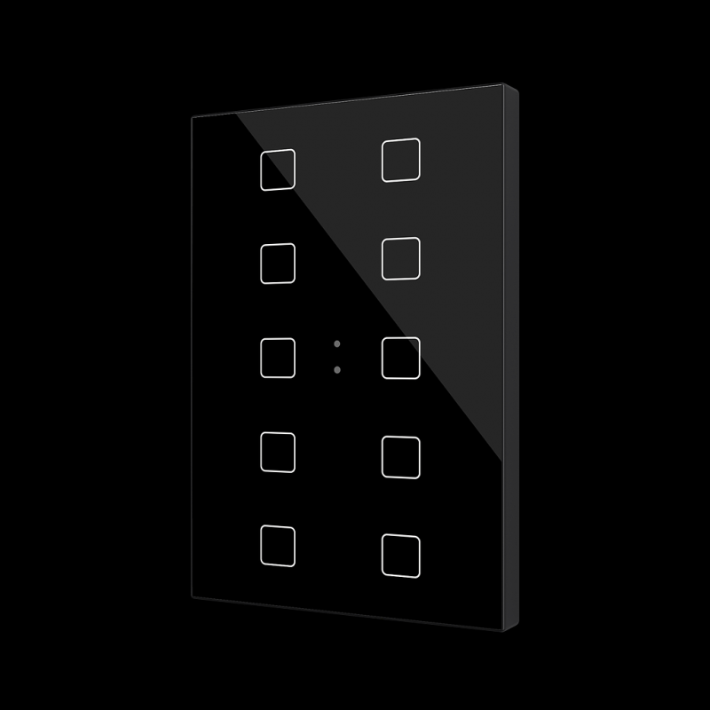 Description: 4, 6, 8 ou 10 boutonsicnes lumineusesConception standard ou personnalisée (via l'outil en ligne de Zennio)Imprimé sur verre2 thermostatsCapteur de température intégré Capteur delumière et de proximité2 entrées analogiques-numériques (pour les boutons, la température et le capteur de mouvement)