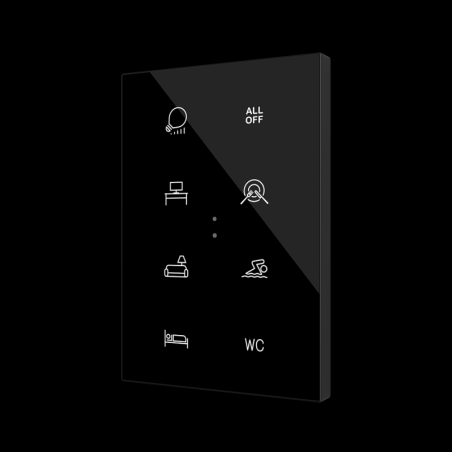 Description: 4, 6, 8 ou 10 boutonsicnes lumineusesConception standard ou personnalisée (via l'outil en ligne de Zennio)Imprimé sur verre2 thermostatsCapteur de température intégré Capteur delumière et de proximité2 entrées analogiques-numériques (pour les boutons, la température et le capteur de mouvement)