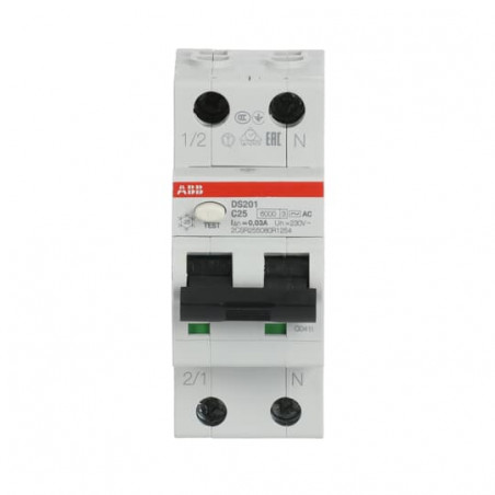Marque: ABBRéférence: 2CSR255080R1254EAN: 8012542049012Emballage: AQ2Description: DS201 C25 AC30 - RCBO