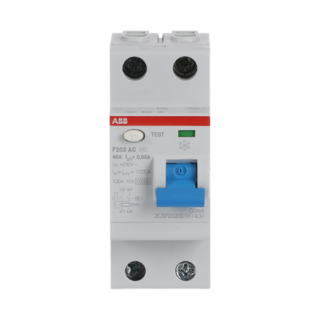 Marque: ABBRéférence: 2CSF202001R1400EAN: 8012542780106Emballage: AQ2Description: F202 AC-40/0,03 Residual Current Circuit Breaker