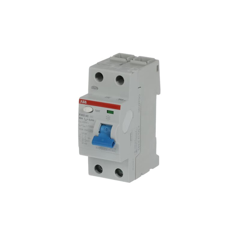 Marque: ABBRéférence: 2CSF202001R1800EAN: 8012542914204Emballage: AQ2Description: F202 AC-80/0,03 Residual Current Circuit Breaker