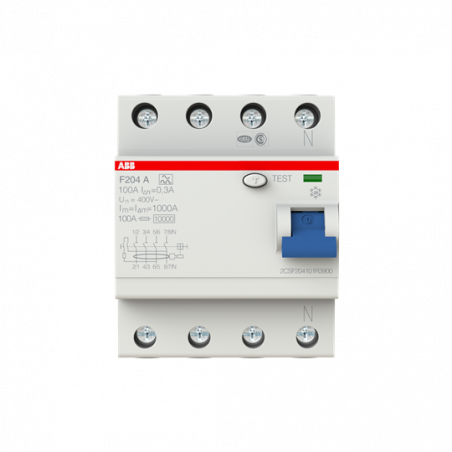 Marque: ABBRéférence: 2CSF204101R3900EAN: 8012542918301Emballage: AQ2Description: Interrupteur différentiel F200 4P, 100A, 300mA