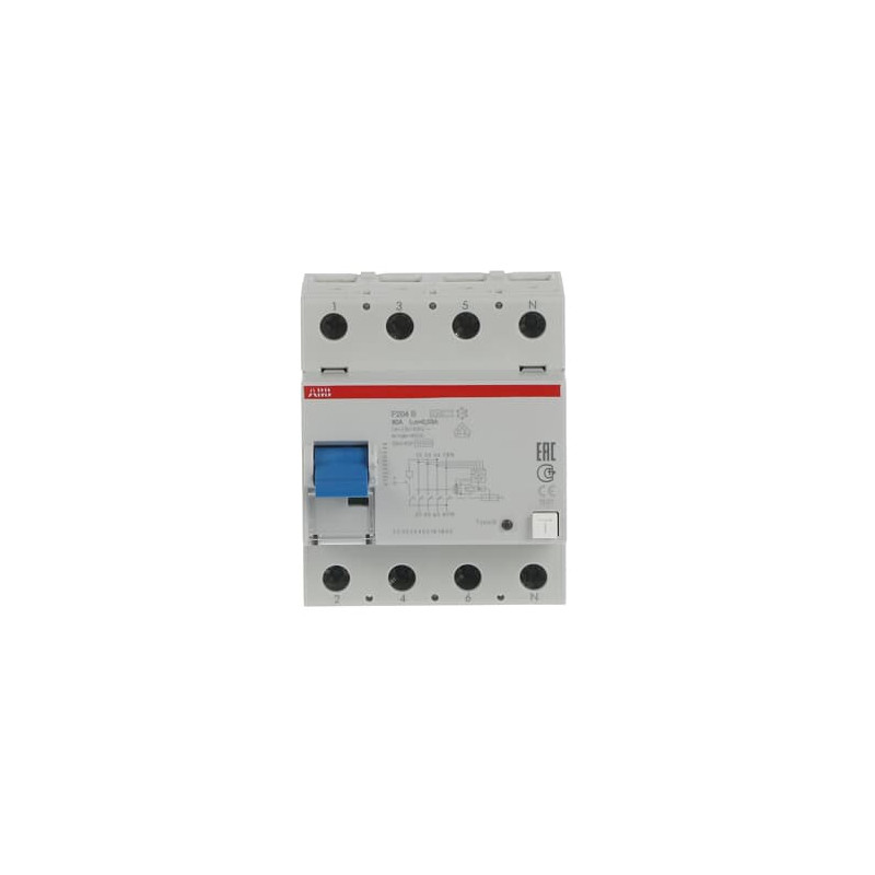Marque: ABBRéférence: 2CSF204501R1800EAN: 8012542988601Emballage: AQ2Description: Interrupteur différentiel 4 p, 80A, 30mA Type B
