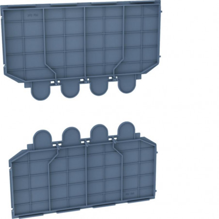 Marque: HagerRéférence: HYW053HEAN: 3250613138950Emballage: 1Description: Jeu de plaques d'isol. pour cache-bornes X630/P630 4P épannouisseurs