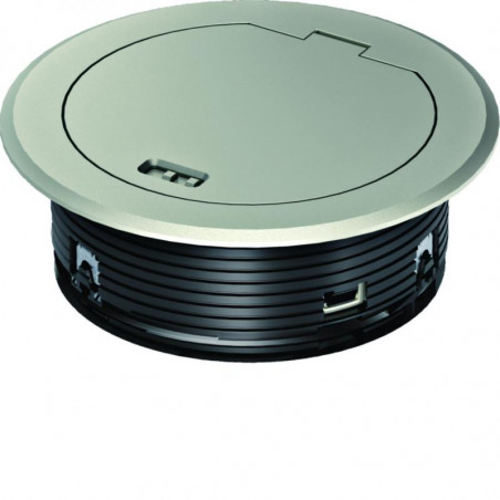 Description: Sortie de câbles en métal argenté pour plancher technique >32mm / passage de plancher flexible